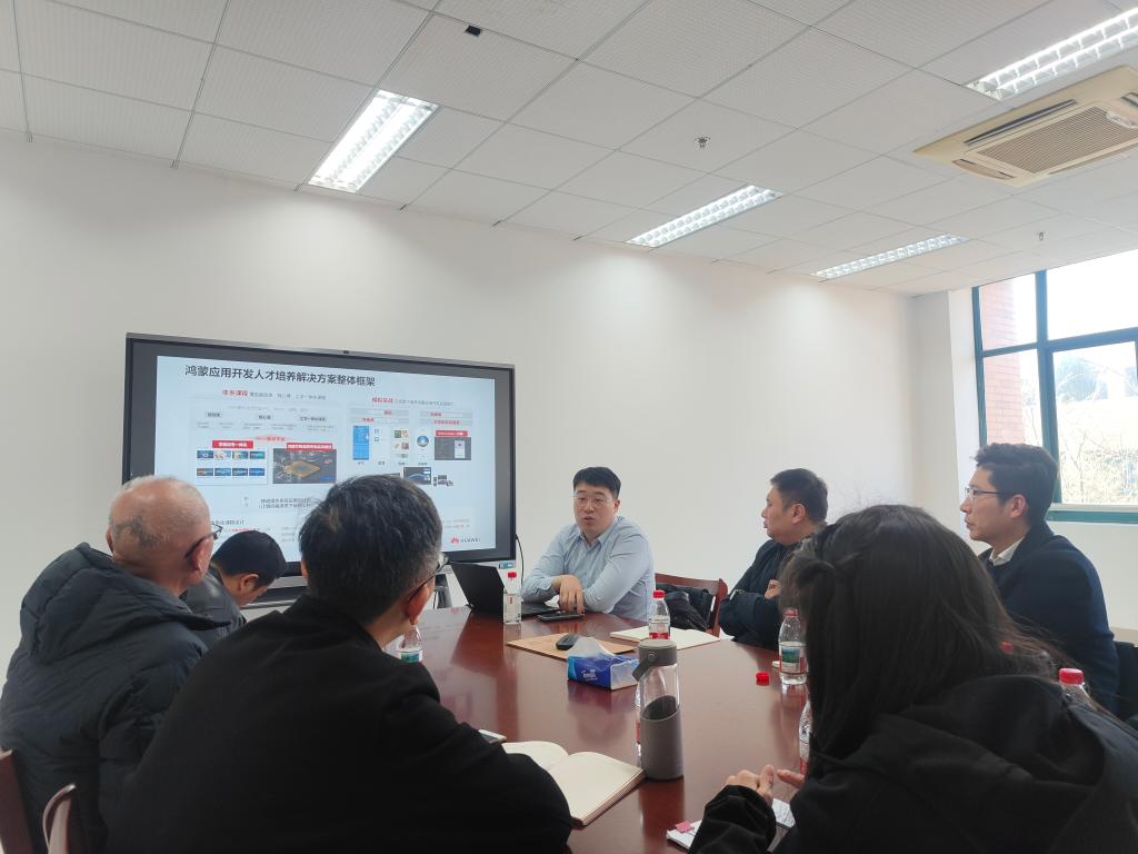 3月10日,华为ICT学院(浙江华为全球培训中心)代表卢大卫及其合作伙伴等一行四人受邀来访,与我院就深化产教融合、协同培养ICT及鸿蒙生态领域人才开展合作洽谈。学院院长成定平、副院长赵培培、人工智能系主任刘铁桥、数科系主任李毓君、教师杨涛出席会谈。本次会谈聚焦鸿蒙移动应用开发方向专班建设、课程体系引入、师资能力提升及学生认证就业等核心议题,共同擘画校企协同育人新蓝图。